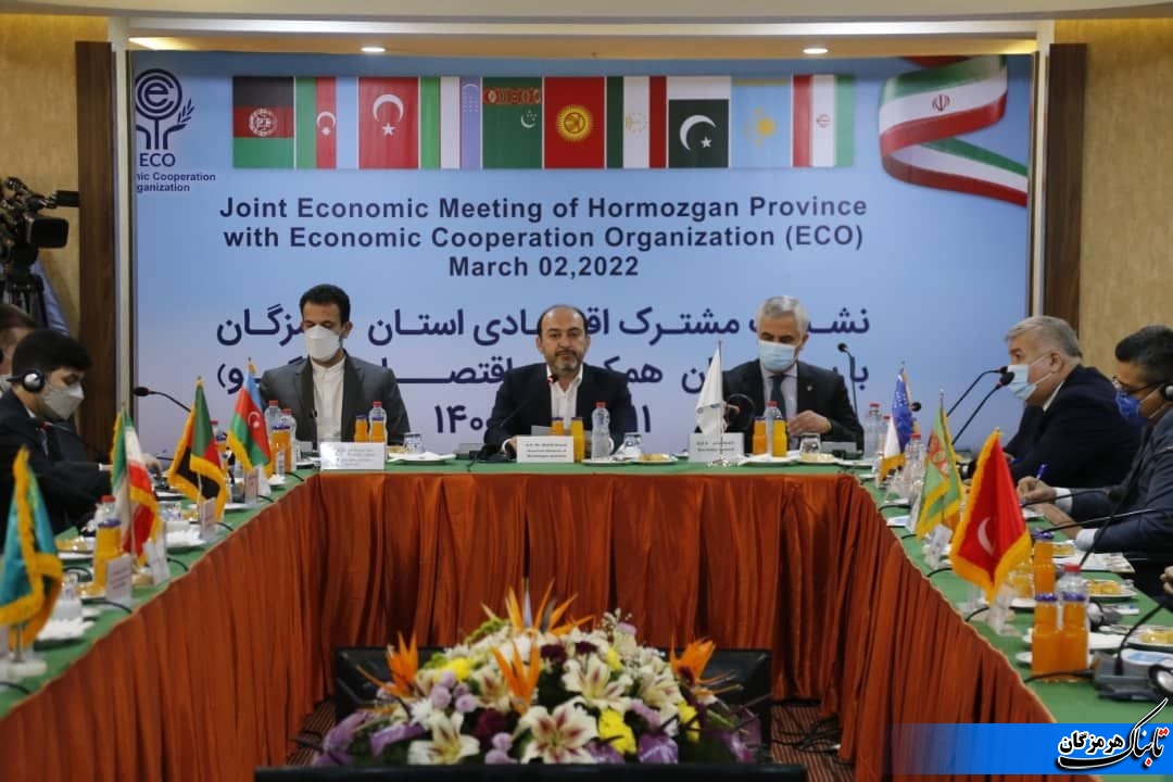 استاندار هرمزگان بیان‌کرد: در کنار این موضوع، استان هرمزگان نیز ظرفیت‌های متعددی دارد که می‌تواند با بهره‌مندی از آن‌ها به عنوان بازوی ترانزیتی کشورهای عضو اکو در تنگه هرمز و آب‌های آزاد نقش‌آفرینی نماید که اهم آن  عبارت است از استقرار بهینه در محور استراتژیک کریدور جنوب- شمال و توانایی برجسته آن در زمینه افزایش فعالیت‌های ترانزیتی، دسترسی به هر چهار نوع شبکه‌های حمل‌ونقلی (هوایی، ریلی، زمینی و دریایی) که نقش فرااستانی دارد، استقرار 14 جزیره بزرگ و کوچک با عملکردهای مختلف تجاری، توریستی و اقتصادی و همجواری با کشورهای آن سوی خلیج فارس، استقرار دو منطقه آزاد تجاری-صنعتی (قشم و کیش) و چهار منطقه ویژه اقتصادی (بندر شهید رجایی؛ منطقه ویژه اقتصادی صنایع معدنی و فلزی خلیج فارس؛ منطقه ویژه اقتصادی کشتی سازی خلیج فارس؛ و منطقه ویژه صنایع انرژی بر پارسیان)، استقرار صنایع بزرگ مانند کشتی سازی خلیج فارس، سیمان خمیر و قشم، دو پالایشگاه بزرگ نفت، پالایشگاه گاز، صنایع آلومینیوم و فولاد و پتانسیل تعاملات مواد معدنی با کشورهای عضو، وجود بنادر چندمنظوره فعال تجاری در سطح استان؛ از جمله بندر شهید رجایی که از مهم‌ترین بنادر جمهوری اسلامی ایران به شمار می رود؛ چراکه به تنهایی بیش از 55 درصدد صادرات و واردات و 70 درصدد ترانزیت بنادر کشور را برعهده دارد.