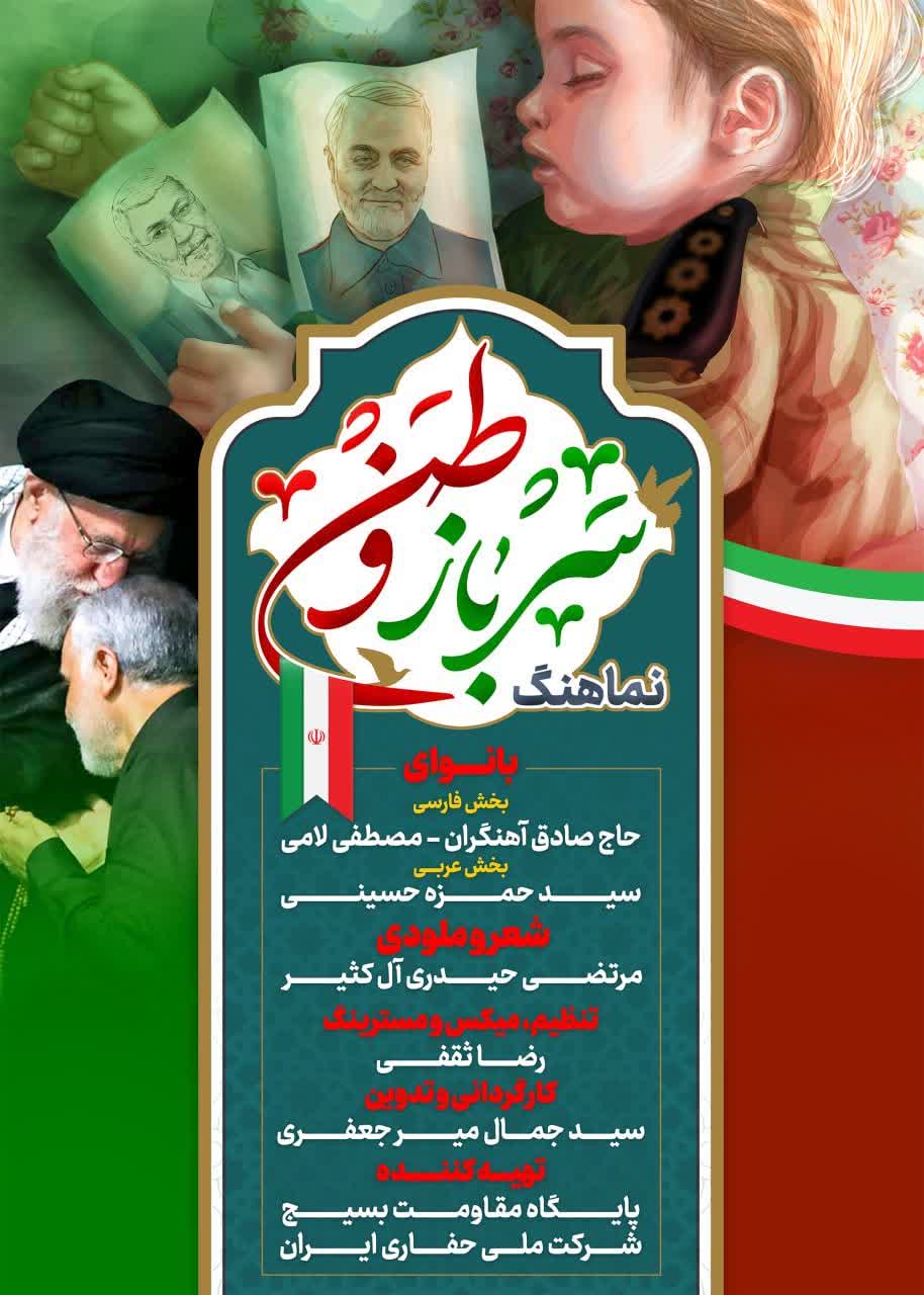 بمناسبت گرامیداشت سومین سالگرد شهادت سردار رشید اسلام و قهرمان ملی ایران شهید حاج قاسم سلیمانی و همچنین بزرگداشت روز جهانی مقاومت، از نماهنگ "سرباز وطن" تولید شده در پایگاه مقاومت بسیج شرکت ملی حفاری ایران رونمایی شد.