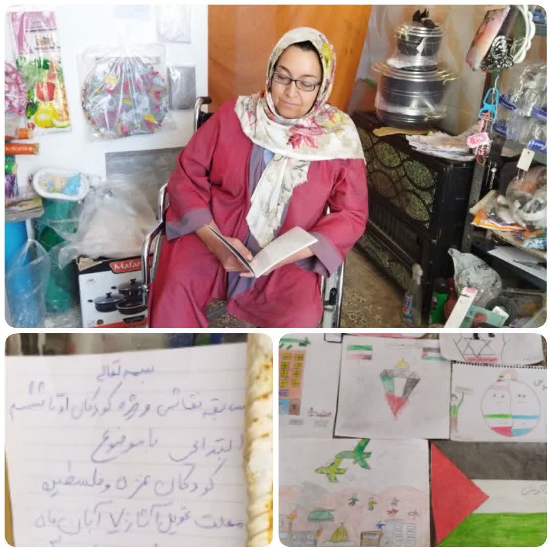 مرضیه بیگم حسینی شاعر وتوان خواه نیشابوری در اقدامی بدیع در مغازه خود مسابقه نقاشی ویژه حمایت ازمردم مظلوم فلسطین و غزه در بین دانش آموزان برگزار کرد.
