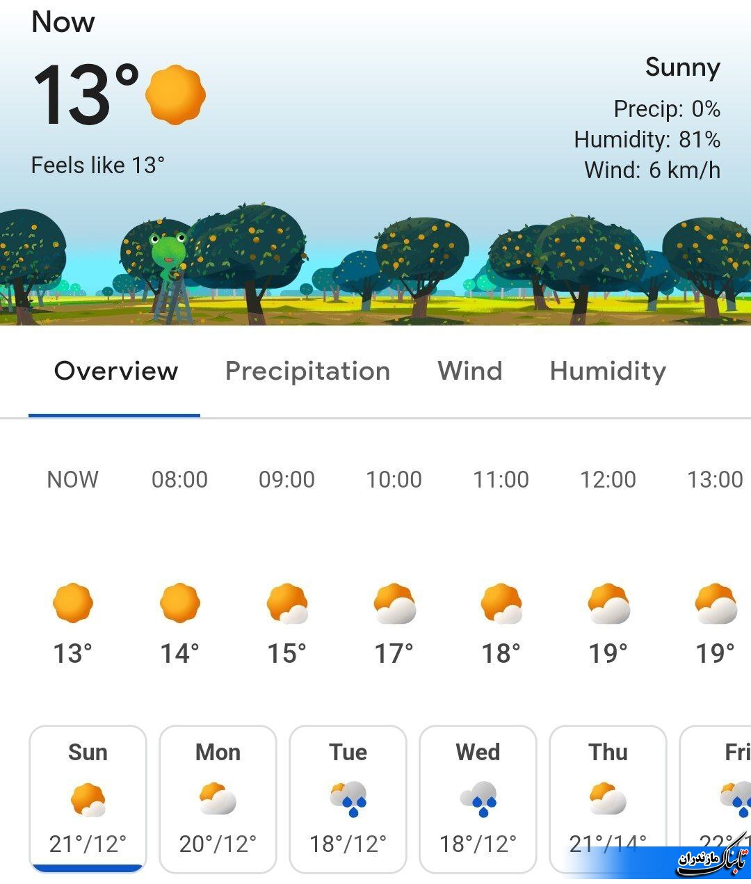 به گزارش تابناک مازندران ، اداره هواشناسی مازندران وضعیت جوی و متوسط دمای استان تا هفته آینده را به این شرح اعلام کرد: