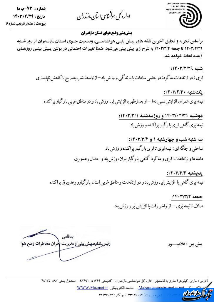 بر اساس این گزارش ، هوای مازندران در هفته جاری همچنان ناآرام است.