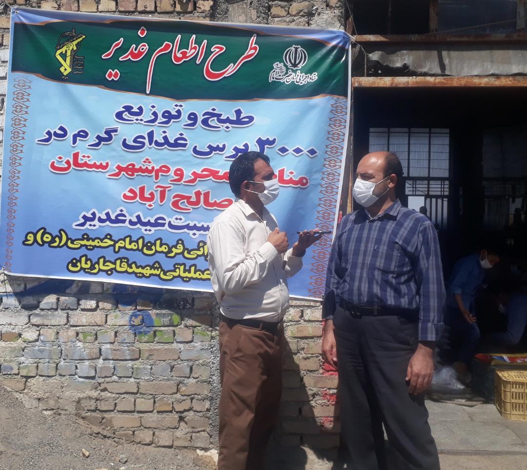 رییس کمیته امدادامام خمینی(ره)صالح آباد با اشاره به اینکه غدیر فرصت مناسبی برای اطعام و رسیدگی به نیازمندان است،افزود:به منظور زمینه سازی برای مشارکت هرچه بیشترخیرین ونهادهای کمک رسان درقالب طرح اطعام روزغدیرتعداد ۵۰۰۰ پرس غذای گرم دردومرحله بامشارکت خیرین،بسیج،قرارگاه عملیاتی شهیدقاجاریان ومحورعملیاتی شهیدکاوه به ارزش ۱۵۰ میلیون تومان تهیه ودر روزعیدتوزیع گردید.
